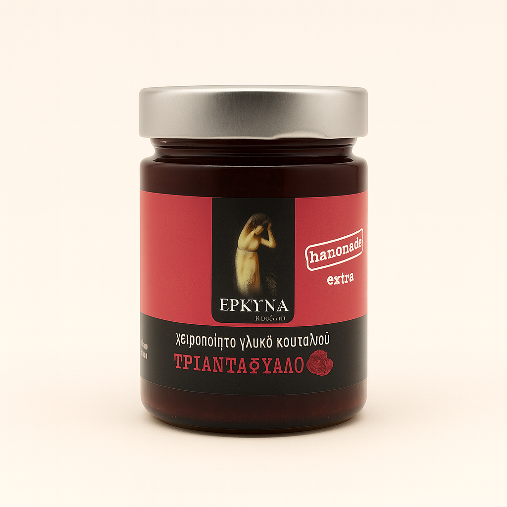 Handcrafted in Livadeia, Viotia, our Rose Spoon Sweet (Τριαντάφυλλο) is an elegant Greek delicacy, made using fragrant rose petals simmered in syrup. This traditional treat, prepared without preservatives or artificial colours, offers a timeless floral aroma and natural goodness in every spoonful.